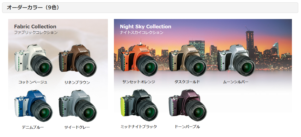 | カラーコレクション / K-S1 / デジタルカメラ / 製品 | RICOH IMAGING http://www.ricoh-imaging.co.jp/japan/products/k-s1/color/ より引用 |